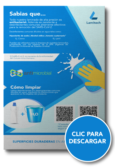 Asepsia e Higiene para superficies libres de bacterias, altamente resistentes a productos de limpieza y desinfección fuertes.*