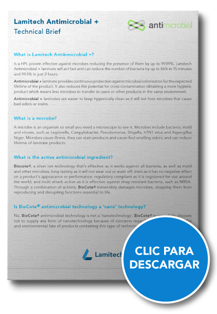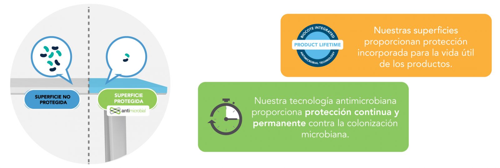 Asepsia e Higiene para superficies libres de bacterias, altamente resistentes a productos de limpieza y desinfección fuertes.*